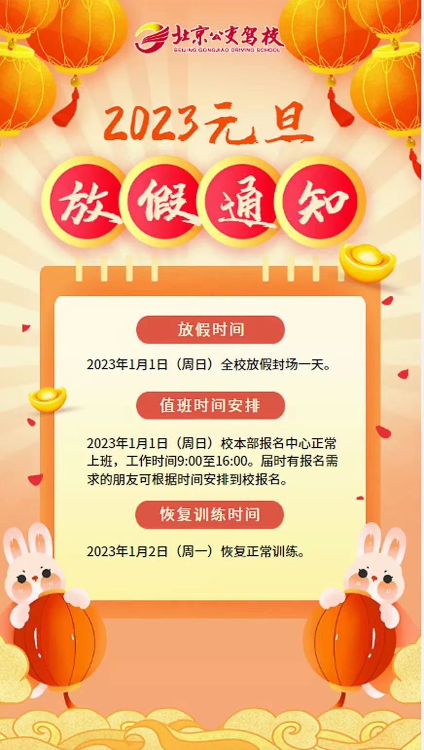 北京公交驾校2023年元旦放假通知