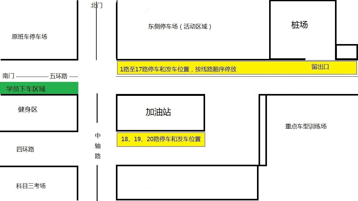 因我校4月20日、21日举办第三届摩托车嘉年华活动,自4月19日16:20起,公交驾校班车校内发车及学员上下车位置临时进行调整:期间所有班车从南门(职工停车场)进出,班车上车位置临时调整